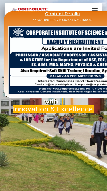 Corporate Group of Institutions has emerged as the best college of Engineering, Pharmacy, Ayurveda, Nursing and MBA providing the finest technical education in India.