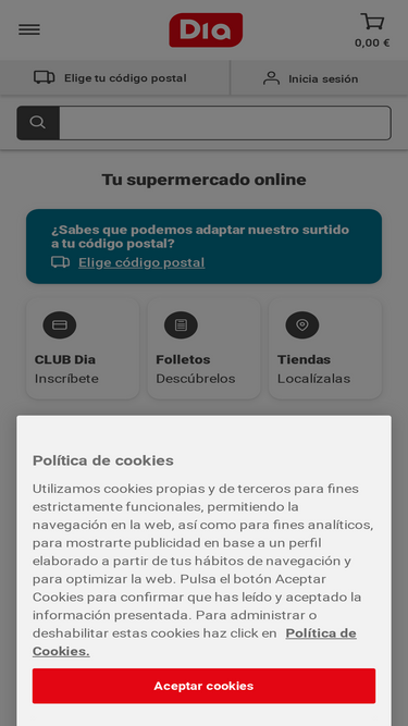 95%supermercado online dia: haz la compra desde casa en nuestro súper online con entrega el mismo día. envío por 4,99€, gratis en compras superiores a 100€.