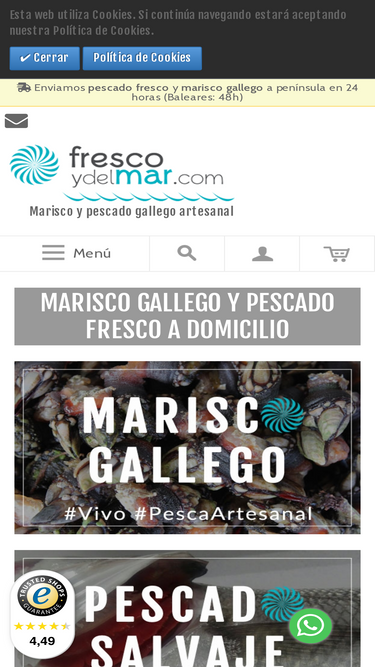 Marisco gallego y Pescado fresco a domicilio. Pescadería online sostenible: marisco y pescado procedente de la pesca artesanal en Galicia. Lo entregamos en 24h desde su captura en tu casa.