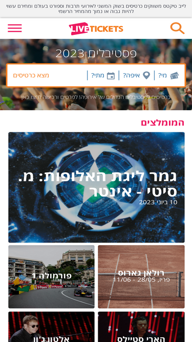 הזמנת כרטיסים למשחקי כדורגל וספורט, כרטיסים להופעות בחול ועוד - livetickets