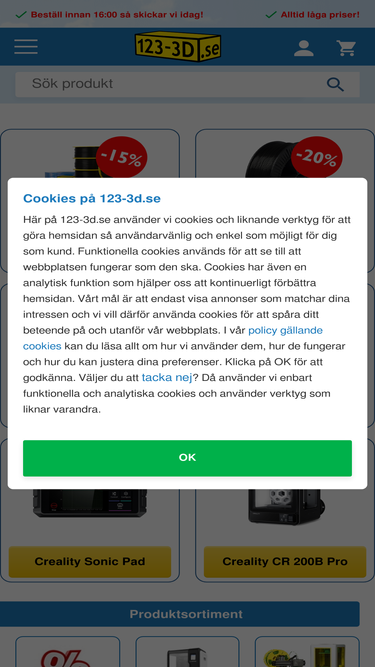 Billiga 3D skrivare | filament | 3D-tillbehör ✔ Beställ före 16.00, skickas samma dag ✔ Säker betalning ✔ Pålitlig och snabb service