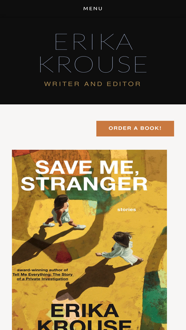 92%Official website for Erika Krouse, award-winning author of Tell Me Everything: The Story of a Private Investigation, Contenders, and Come Up and See Me Sometime.