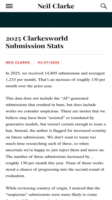 在 1月 2026,neil-clarke.com 被評為與 litmagnews.substack.com 相似度第四高的網站,onlypoems.net 則位居第五。