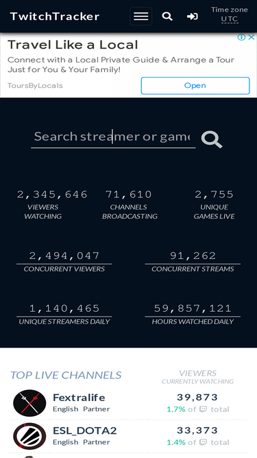 Twitch, YouTube, Kick and Rumble channels & games and categories analytics & streaming stats. Viewers & Followers stats, streamers analytics & dynamics.