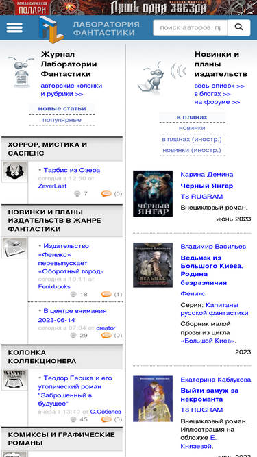 На этом сайте трудами нескольких сотен человек собирается информация о фантастике, фэнтези и обо всём, что с ними связано.