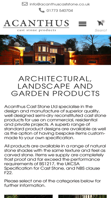 manufacturers and suppliers of cast stone and concrete products including pier caps and wall copings, paving and patio, cast stone and concrete window sills and heads and many other products for a range of architectural and landscaping projects.
