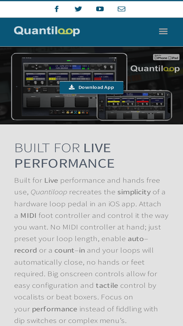93%MIDI Control Quantiloop offers extensive support for MIDI control. All major actions, track control, start/stop, rhythm, faders etc, can be fully controlled through MIDI. If your an instrumentalist you want to keep your hands free and control the looper from a foot pedal, or you may just want to have more tactile