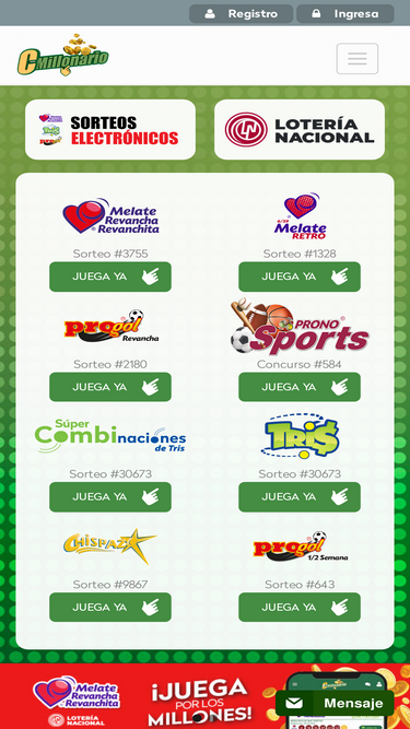 resultados del tris de hoy, chispazo, melate y de todos los sorteos electrónicos de la lotería nacional de méxico.