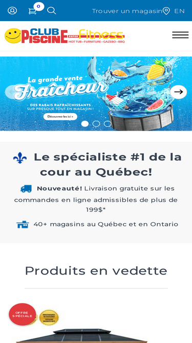 Découvrez piscines hors terre et creusées, spas, thermopompes, accessoires, produits d’entretien, gazebos et mobilier de jardin. Achetez en ligne ou visitez les magasins Trévi au Québec.