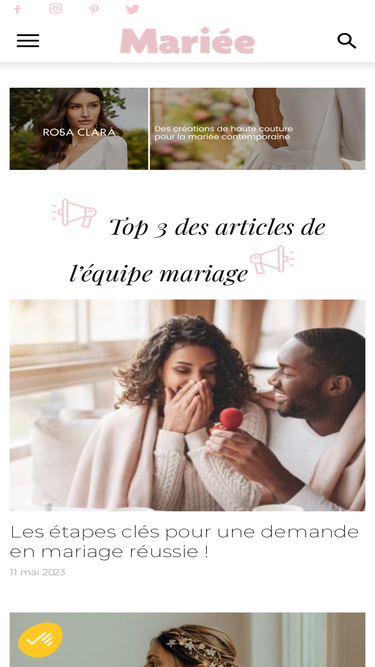 Que votre mariage soit classique ou original, chic ou champêtre, Mon-Mariage.com décline dans ses rubriques toutes les informations dont vous allez avoir besoin. Magazine et guide des professionnels sont là pour vous faciliter la tâche, sans oublier le Forum pour partager votre mariage avec les mariés de la France entière.