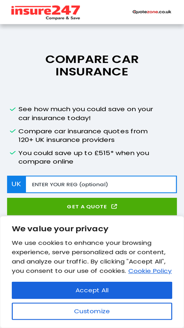 Compare a wide range of insurance products and earn rewards including cashback and prize draw entries through Quotezone Rewards.