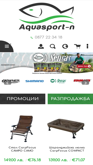 Риболовен магазин Aquasport-n. При нас ще имате възможност да видите, тествате и закупите пълната гама от продуктите на SENSAS, STARBAITS, ILLEX, PEZON & MICHEL, GUNKI, OWNER, CULTIVA, GURU, CARPFOCUS