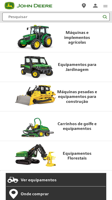 descubra as linhas de máquinas e implementos agrícolas e equipamentos de construção, assim como máquinas florestais que a john deere tem a oferecer.