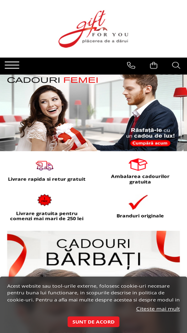 83%Idei de cadouri pentru iubită: vin & ciocolată, lumânări parfumate, mesaje personalizate. Ambalaj inclus, livrare rapidă 1-3 zile.