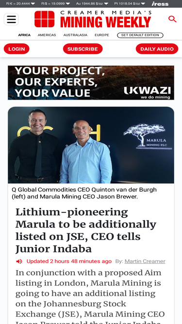 在 1月 2026,miningweekly.com 被評為與 miningreference.com 相似度第四高的網站, 則位居第五。