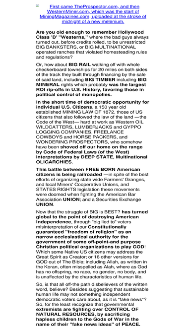 100%The Western Miner is a Directory of Mining Claims staked under the 1872 Mining Law, offered for outright sale, trade, lease, joint venture,or by the measured in-place ton by independent prospectors.