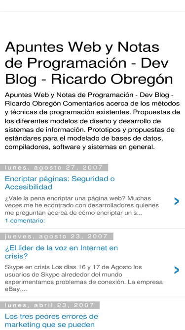 apuntes web y notas de programación - dev blog - ricardo obregón comentarios acerca de los métodos y técnicas de programación existentes. propuestas de los diferentes modelos de diseño y desarrollo de sistemas de información. prototipos y propuestas de estándares para el modelado de bases de datos, compiladores, software y sistemas en general.