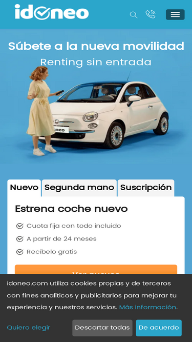 100%Suscripción de coches por meses en España: la mejor opción frente al Renting o Alquiler de vehículos. Escoge entre más de 40 modelos, con seguro, mantenimiento e impuestos incluidos en una única cuota mensual.