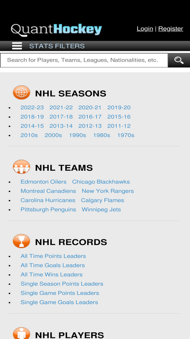 easy to use tools for slicing and dicing nhl statistics in every way imaginable. complete stats for every player, season and team in the national hockey league.