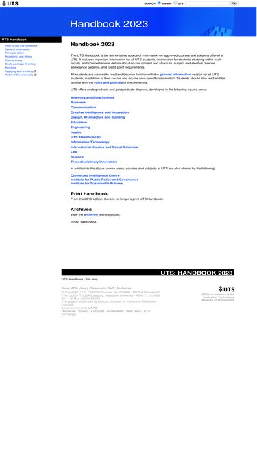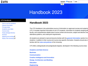 79%the uts: handbook is the authoritative source of information on approved courses and subjects offered at university of technology sydney.