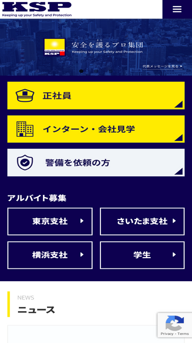 横浜に本社のある警備会社 安心、安全、未来を守る株式会社KSP。多種多様な警備業務を、そして神奈川県全域をサポートします。警備員を募集中です。新卒者の皆様は求人情報をご覧いただき、お気軽にご応募ください。