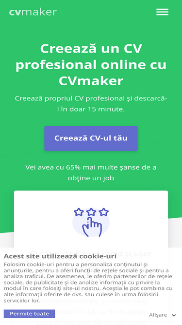 71%CV creator simplu CVMaker vă permite să creați un CV profesional pentru orice loc de muncă la care aplicați. ➜ Vedeți cât de ușor este să scrieți un CV perfect!