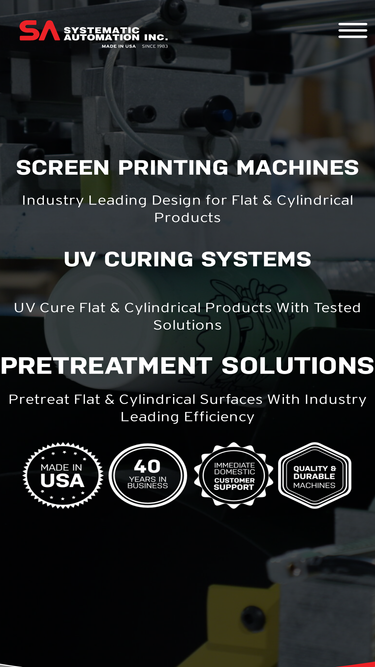 Systematic Automation has been making screen printing machines, UV curing machines, flame treatment machines, and vacuum tables for 40 years.