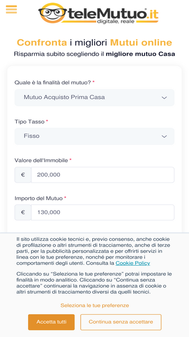 100%su mutui.it puoi effettuare un preventivo di mutuo in soli 2 minuti. confronta le offerte delle migliori banche partner e scegli quella che fa per te!