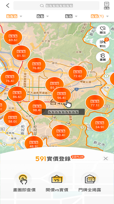 100%比對到門牌、拆分房車價、排除特殊交易,提供社區實價登錄地圖。