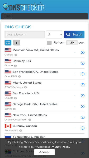 71%Check DNS Propagation worldwide. DNS Checker provides name server propagation check instantly. Changed nameservers so do a DNS lookup and check if DNS and nameservers have propagated.