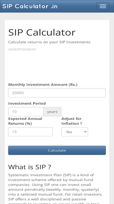 sip calculator - a free online tool for calculating returns on your monthly sip investments. get a rough estimate on your final maturity amount.
