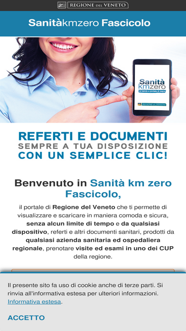 Portale della Regione del Veneto per visualizzare e scaricare da qualsiasi dispositivo, senza limiti di tempo, referti e documenti relativi alla tua salute.