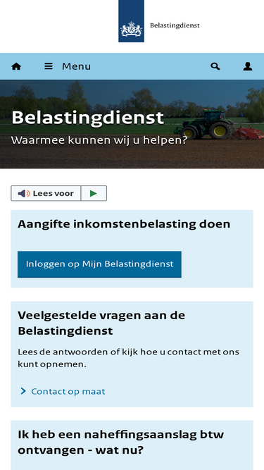 92%startpunt voor belastingen. lees hoe u aangifte doet en wanneer wij uw voorlopige aanslag uitbetalen. of vind een antwoord op uw vraag in het menu en bij belangrijke thema's.