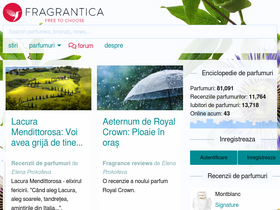 86%Fragrantica: destinația ta online pentru tot ce ține de parfumuri Descoperă lumea parfumurilor cu Fragrantica, o resursă online cuprinzătoare, revistă și comunitate dedicată pasionaților de arome. Menținem cititorii noștri la curent cu cele mai recente lansări de parfumuri, arome renumite și comori ascunse. Porniți într-o călătorie senzorială prin timp și spa