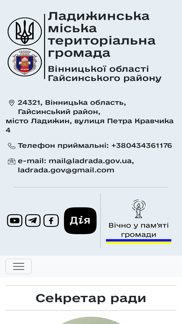 ладижинська міська територіальна громада, ладижинська міська рада, ладижин, офіційний сайт