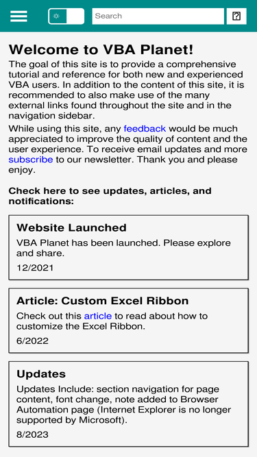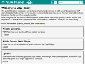 100%welcome to vba planet! the goal of this site is to provide a comprehensive tutorial and reference for both new and experienced vba users.