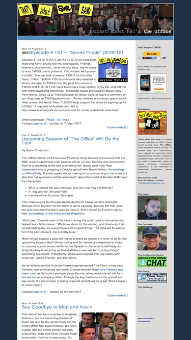 that's what she said takes an in-depth look at the world of nbc's the office. each and every week we will offer episode commentary, news, reports on upcoming media appearances of the cast, a selection of podsafe music, and much more.