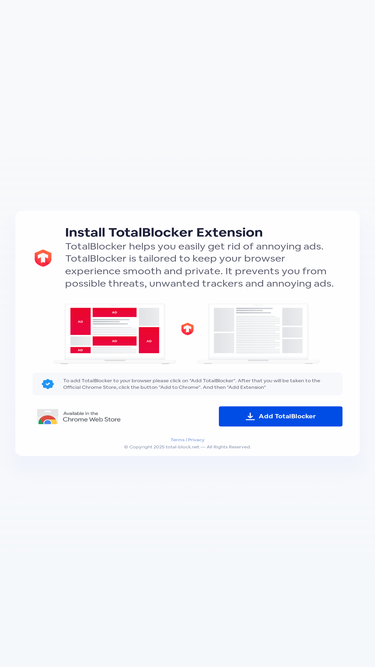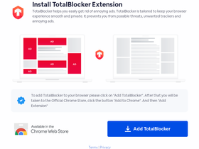 72%Use TotalBlocker, the best ad blocker solution for Chrome. Say goodbye to popups, video ads and intrusive ads on your favourite websites.