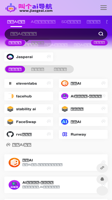 86%叫个ai人工智能导航网站,提供国内外ai人工智能工具,帮助创作者发现ai绘画,ai设计,ai换脸,ai智能写作,ai对话机器人,ai配音,ai视频,ai数字人等工具,帮助你更高效的工作,学习的导航网站。