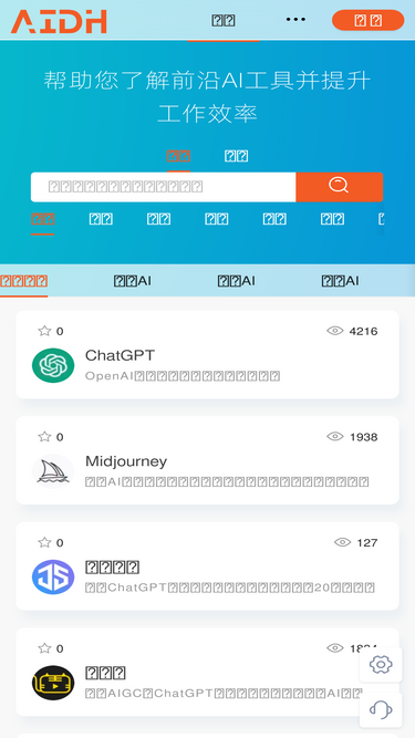 74%aidh选及整理最优秀的ai绘画,ai聊天,ai提示词,ai办公,aigc,文生图等网站,让ai融入每个人的工作与生活,收录网站包括ai生成图片、ai生成视频、ai生成文案、文生图、ai绘画、ai办公、ai聊天等等。拥有智能推荐、强大的站内搜索、账号收藏云同步、自定义站点、只为前沿生产力而生。用ai就上aidh!