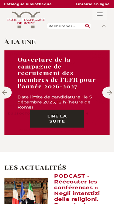 L'Unione internazionale degli Istituti di Archeologia Storia e Storia dell’Arte in Roma propose un programme de résidence coordonné par l'EFR pour de jeunes chercheurs ou des maîtres de conférences des université françaises.