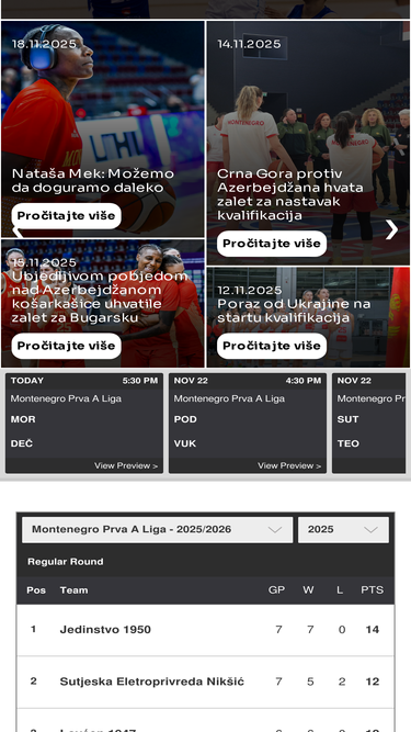 94%the official site of the montenegro basketball association. follow the action on scores, schedules, stats, news, team and player news.