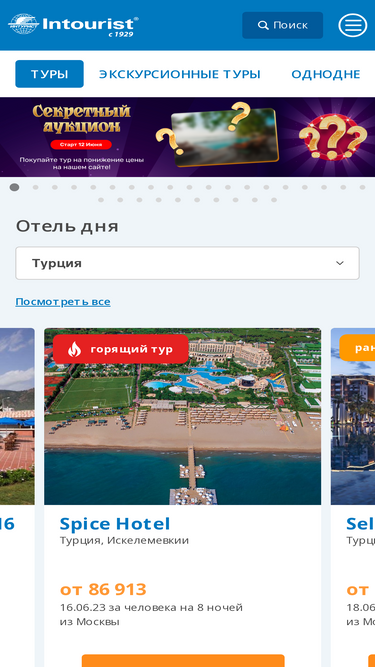 71%горящие туры, популярные курорты и лучшие отели, лучшие цены. испания, греция, кипр, таиланд, индия, индонезия, вьетнам, китай, тунис, оаэ, израиль, иордания, марокко, мексика, куба, мальдивы, доминикана, андорра,болгария, италия, франция, великобритания, австрия, чехия, эстония, латвия, литва, россия, крым от туроператора интурист