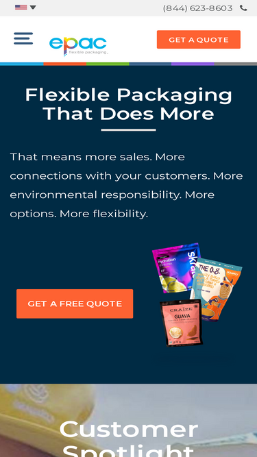90%Flexible packaging made simple with ePac. We are a flexible packaging company that creates pre-media design, digital printing & pouch making for your business, made in the USA. Contact us today for a quote! 844-623-8603