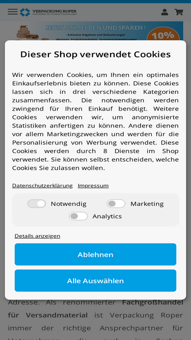38%Versandmaterial günstig online bestellen in Ihrem B2B Online Shop für Versandmaterial - Verpackung Roper. Große Auswahl und persönlicher Kontakt!
