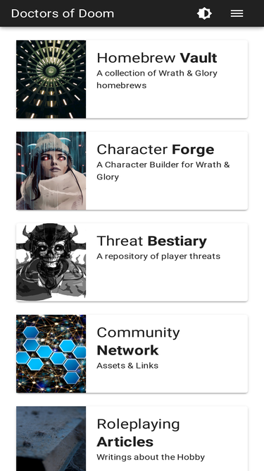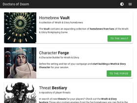within the warhammer 40k universe, the doctors of doom are serving the wrath & glory roleplaying game community. here you find homebrews and a character creator & manager.