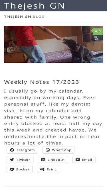 A container for all my views with excerpts from technology, travel, films, books, kannada, friends and other interests. I am Thejesh GN, friends call me Thej.