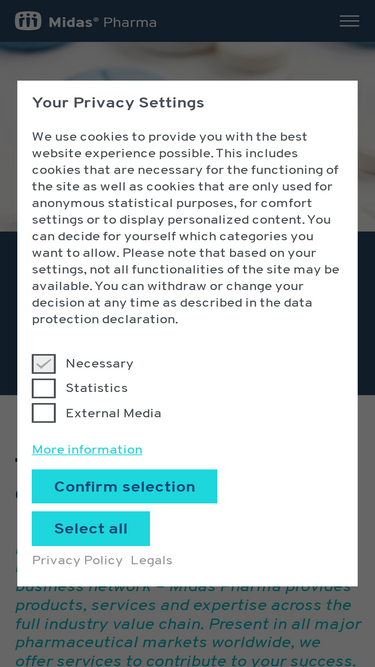 Sofern nicht ausdrücklich anders angegeben, sind alle Inhalte auf dieser Website Eigentum der Midas Pharma GmbH ("MIDAS") und sind urheberrechtlich geschützt.
