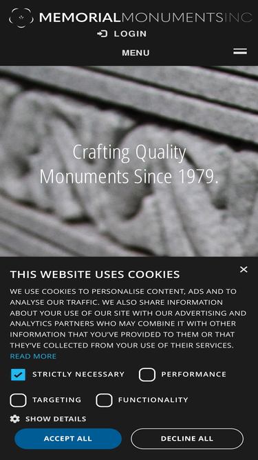 founded in august of 1979 on the principles of quality and service. memorial monuments stands by its motto 'when only the best is good enough'