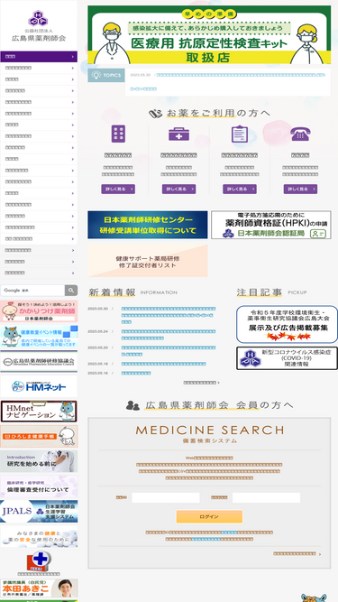 広島県薬剤師会です。研修会などの薬剤師のみなさまへの情報・薬に関する県民のみなさま向けの情報をまとめて掲載しています。